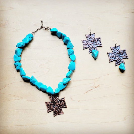 Copper Cross Earrings w/ Blue Turquoise Chunks